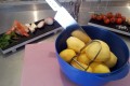 Pulire ,pelare,e tagliare le Patate  a Spicchi, sbollentarle in una pentola con dell'acqua in ebolizione e salata , per 8 minuti, o si possono sbollentare in  microonde coperte con  della pellicola trasparente per 5 minuti con 1\2 bicchiere di acqua (max potenza).